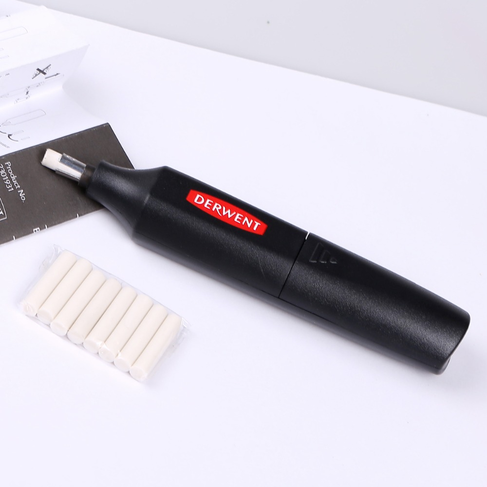 Le gomme contenute nel set sono compatibili con Gomma elettrica a batterie e con la gomma ricaricabile USB della Derwent