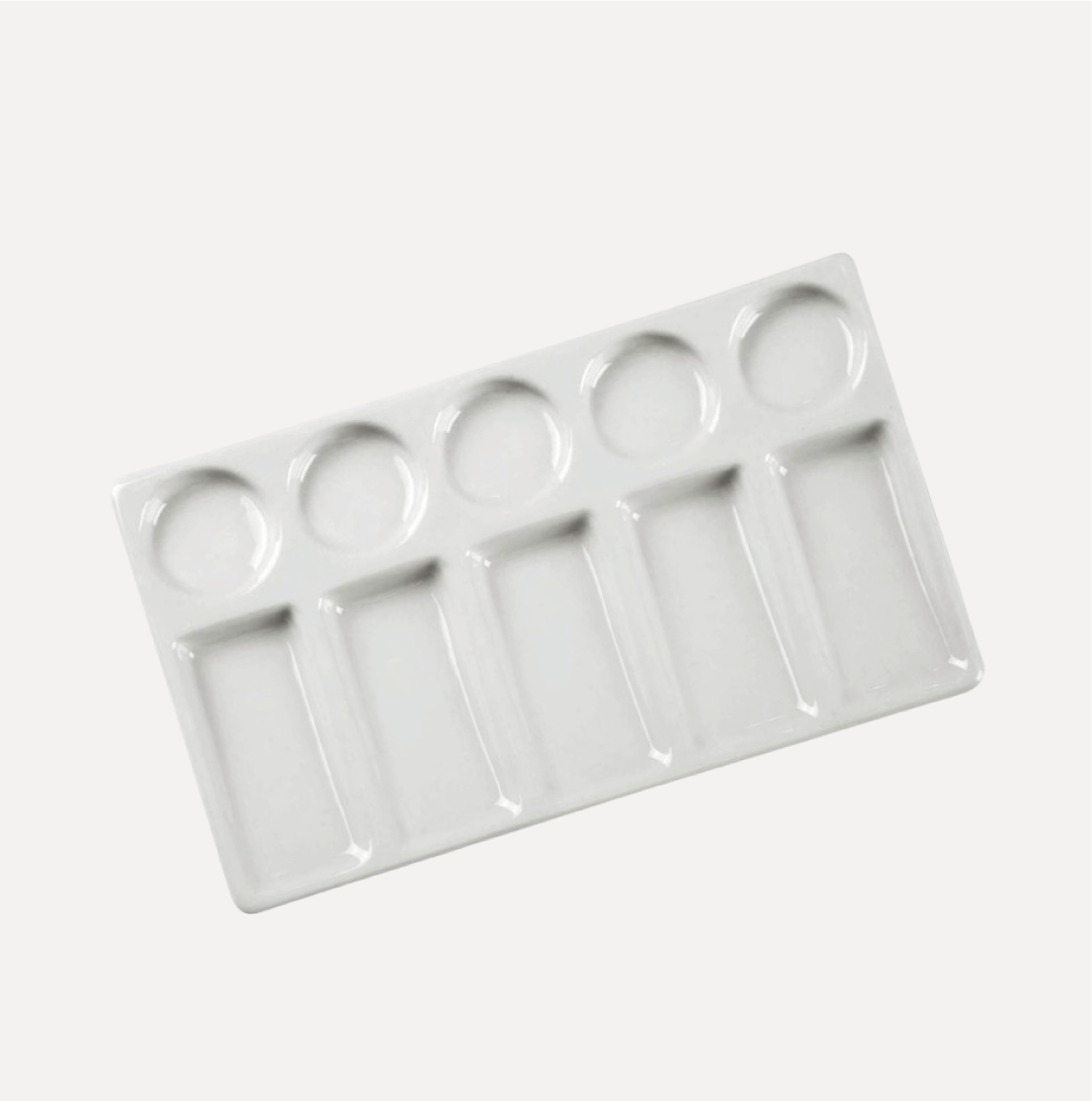 TINTORETTO Tavolozza Porcellana Rettangolare 11x19cm. Con 5 vaschette tonde e 5 rettangolari – Dimensioni 11×19 cm.