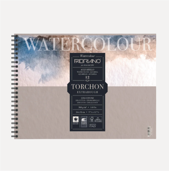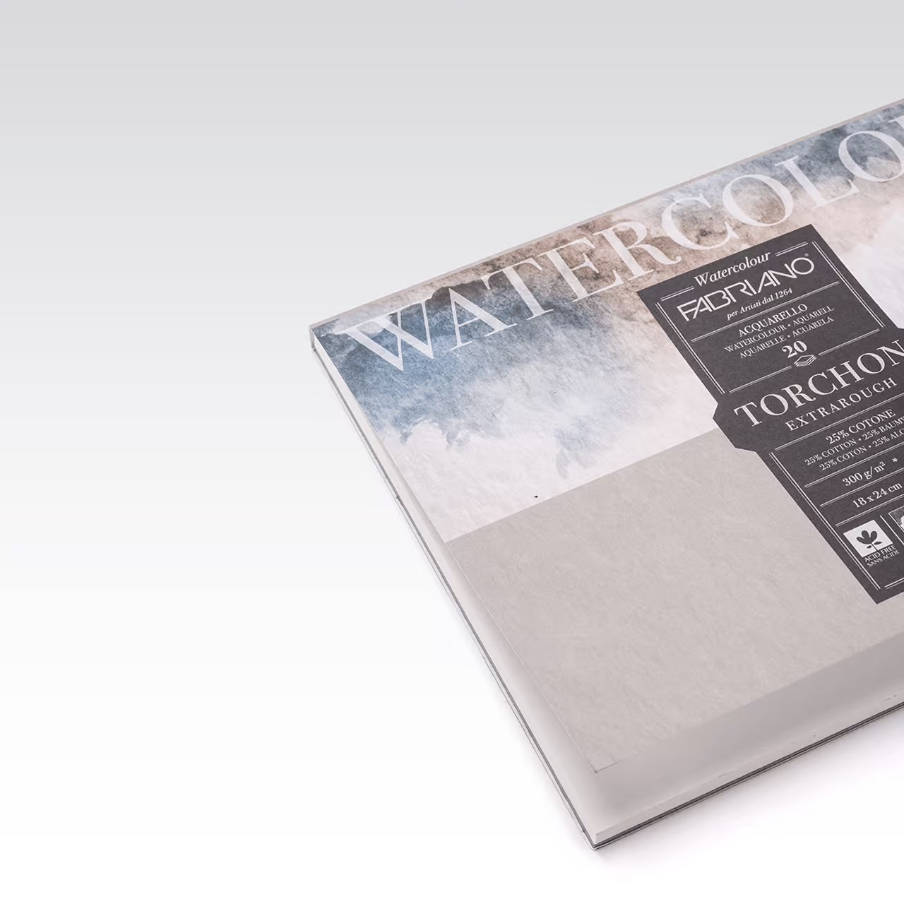 FABRIANO Blocco a spirale Watercolor Torchon 300g – Grana Fina. Questa carta per acquerello si presenta con una grana “rotonda” che permette di ottenere risultati pittorici di particolare effetto.