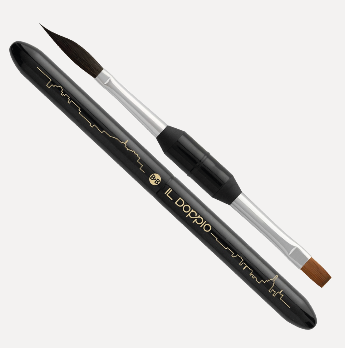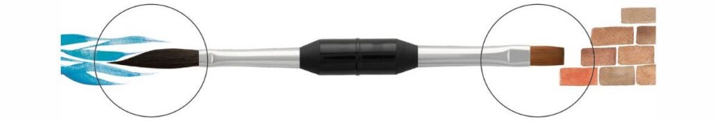 BORCIANI e BONAZZI Pennello per Acquerello IL DOPPIO 2. la soluzione ideale per chi cerca versatilità e precisione in un formato compatto. Con doppia punta, una a spada in Filato Sintetico Hidro® e l’altra piatta in Martora Kolinsky Sintetica MKS®, offre un’elevata assorbenza e rilascio graduale dell’acqua, oltre a un’ottima tenuta del colore.
