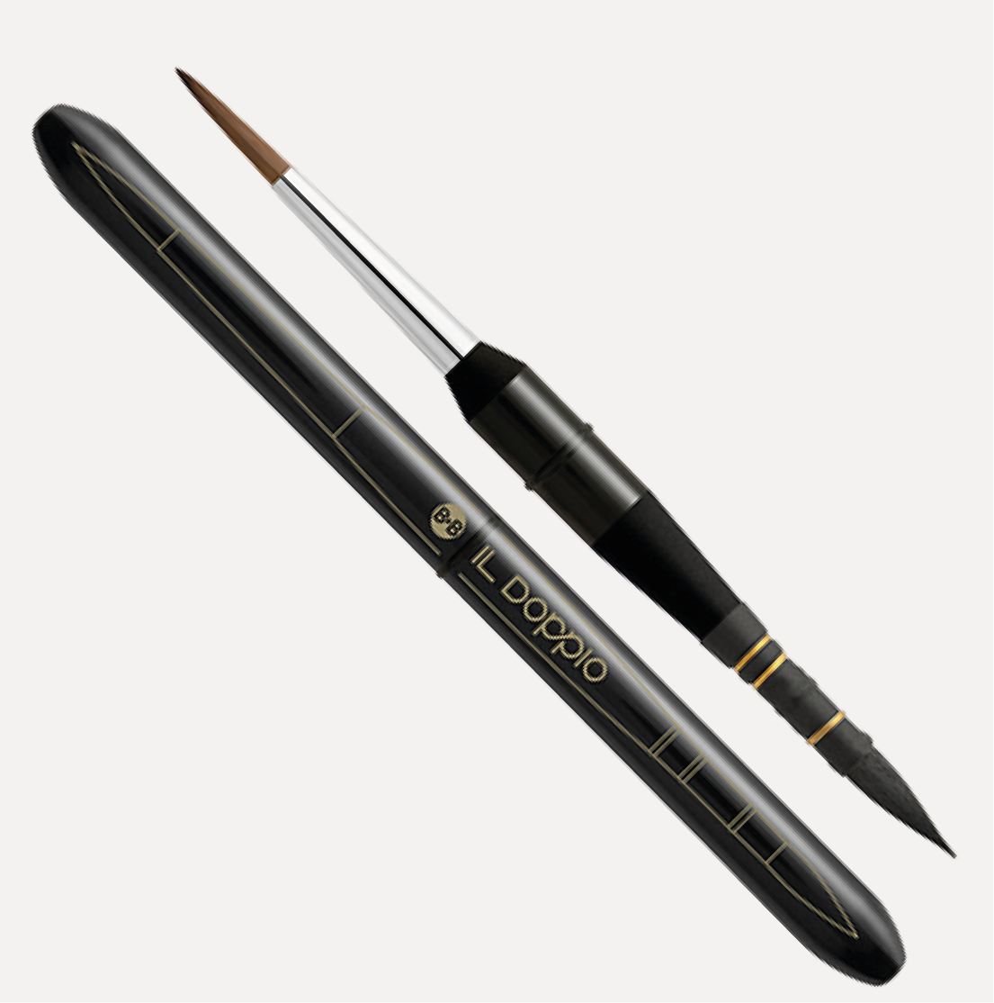 BORCIANI e BONAZZI Pennello per Acquerello IL DOPPIO. doppia punta! Si tratta del primissimo pennello da viaggio dotato di doppia testa richiudibile. Da un lato abbiamo una punta tonda in filato MKS®, Martora Kolinsky Sintetica, e dall’altro, in filato sintetico Hidro®. Entrambe le punte sono adatte per acquerello e gouache.
