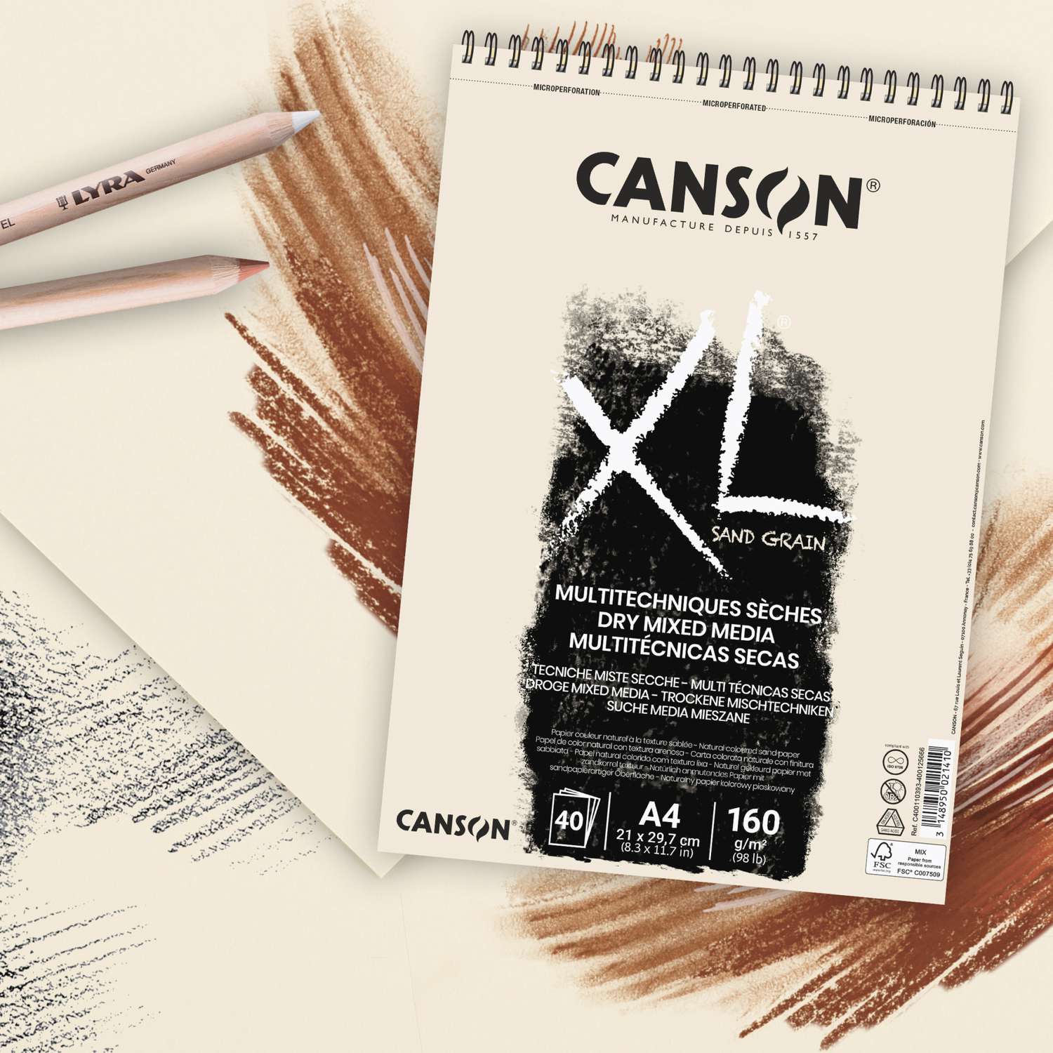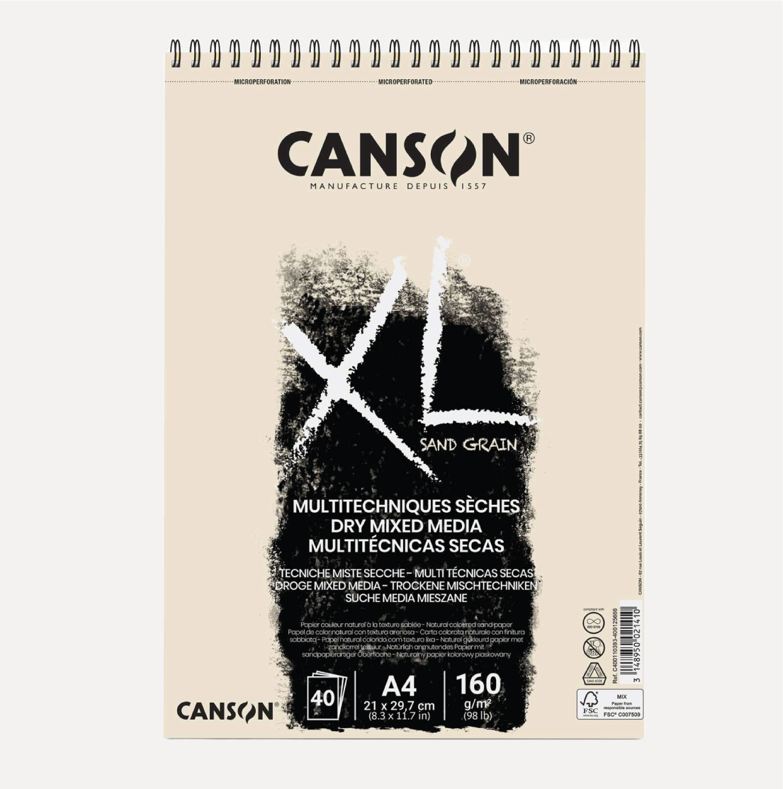 CANSON Blocco XL Mixed Media per tutte le Tecniche SAND GRAIN. La carta Canson XL Sand Grain è caratterizzata da una superficie vellutata, ottenuta grazie alla presenza di speciali materiali di origine biologica. I pigmenti aderiscono molto bene alla sua superficie (perfetti per effetti cromatici delicati). La carta è resistente, permette cancellature facili e può essere utilizzata su entrambi i lati.