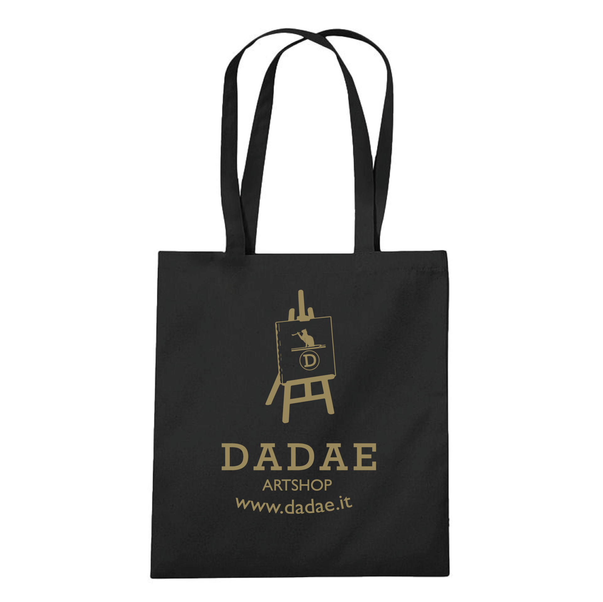 DADAE Shopper in cotone LIMITED EDITION 2022 con lunghe tracolle, cotone al 100%, colore Nero e stampa oro, per portare con te tutti gli strumenti per dipingere!