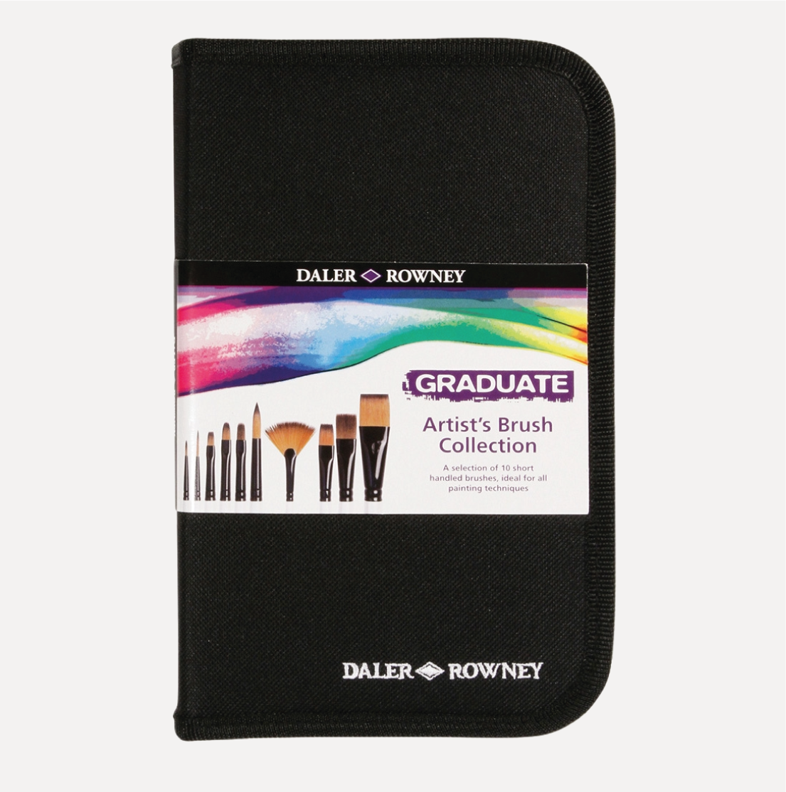 DALER ROWNEY Astuccio 10 Pennelli GRADUATE. Bellissimo astuccio con cerniera contenente 10 pennelli a manico corto. Questi pennelli hanno filamenti sintetici, perfetti per lavorare con colori acrilici, acquerello o Olio!