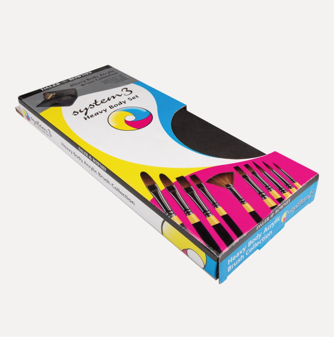 DALER ROWNEY SYSTEM3 Astuccio 10 Pennelli Heavy Body. Bellissimo astuccio con cerniera contenente 10 pennelli a manico lungo System 3. Questi pennelli hanno filamenti più rigidi, perfetti per lavorare con vernice acrilica Heavy Body!