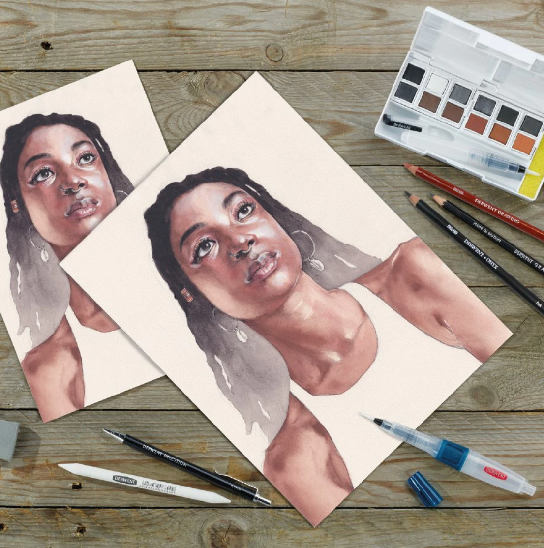Questi rivoluzionari colori formulati da Derwent, sono gli stessi che si trovano all’interno delle matite. Questi a differenza dell’acquerello permettono di creare lavaggi senza macchiare e sopratutto, nella linea Inktense i colori restano vividi anche da asciutti e puoi applicare diversi strati senza rovinare i precedenti!