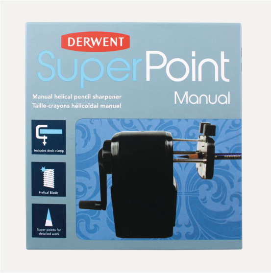DERWENT Tempera Matita a manovella Super Point. Crea dettagli precisi con un temperamatite manuale elicoidale Derwent Super Point. La resistente lama elicoidale affila le matite fino a raggiungere delle punte eccellenti.