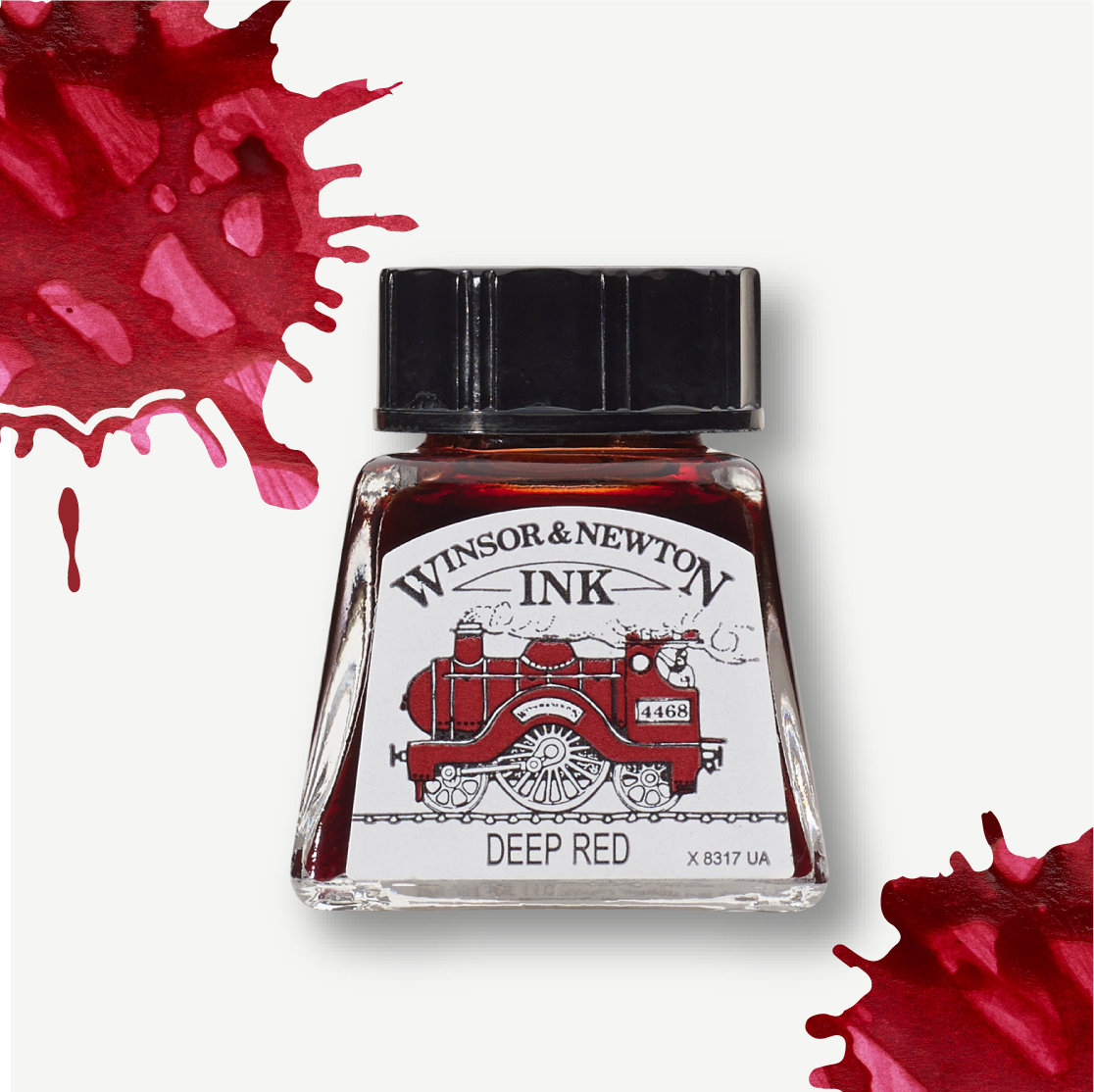 WINSOR & NEWTON Drawing Ink. Inchiostro ad asciugatura rapida, trasparente e resistente all’acqua con un’eccezionale brillantezza dei colori. Questi Ink possono essere utilizzati con un pennello, un pennarello o un aerografo, sono ideali per illustrazioni e Calligrafia