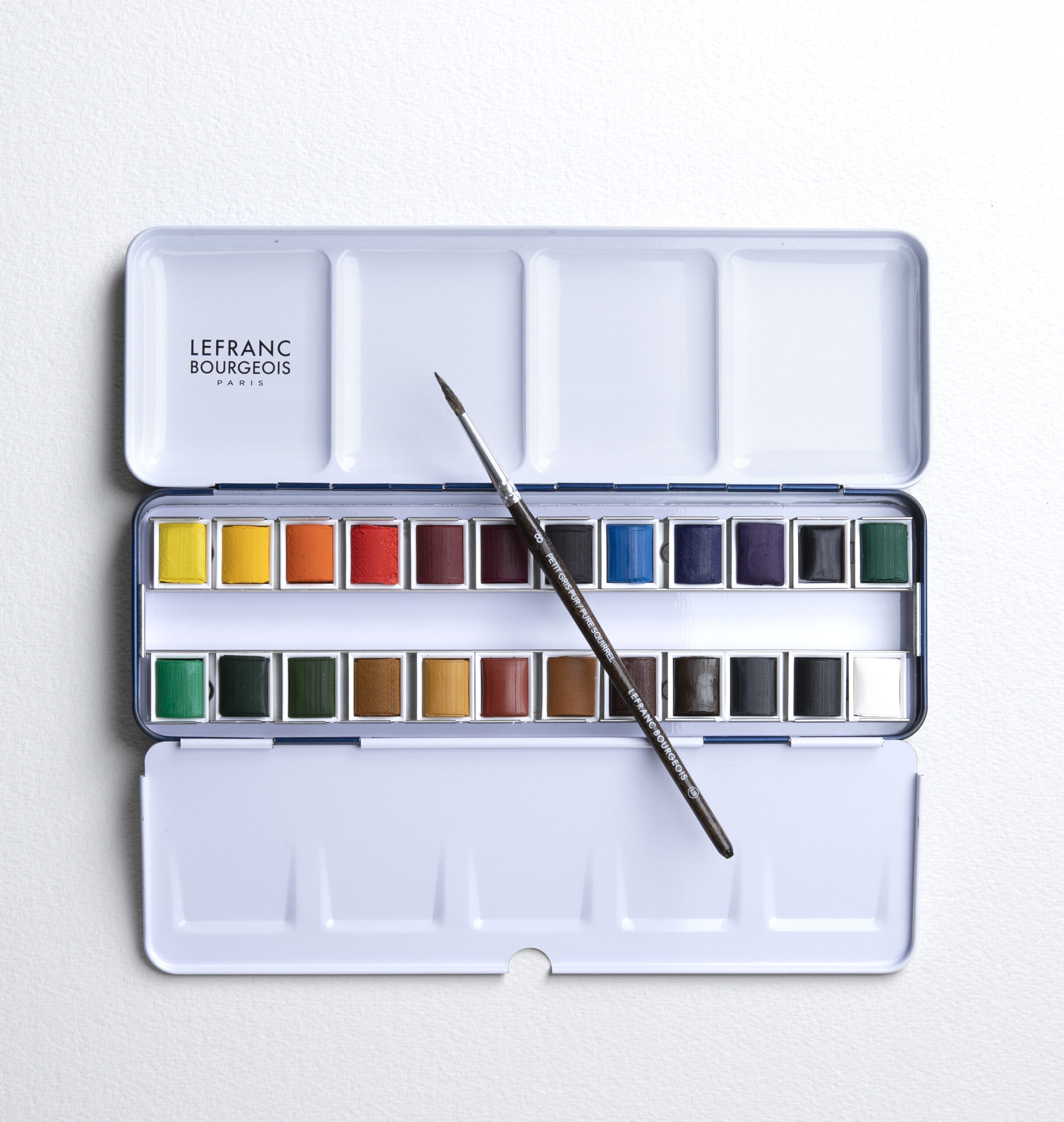 LEFRANC & BOURGEOIS Acquarello Fine set 24 Mezzi Godet. Lefranc & Bourgeois Acquarello Fine. Set in metallo con tavolozza, 24 mezzi godet e pennello. Il set perfetto per viaggiare e avere i giusti colori per creare perfette sfumature!