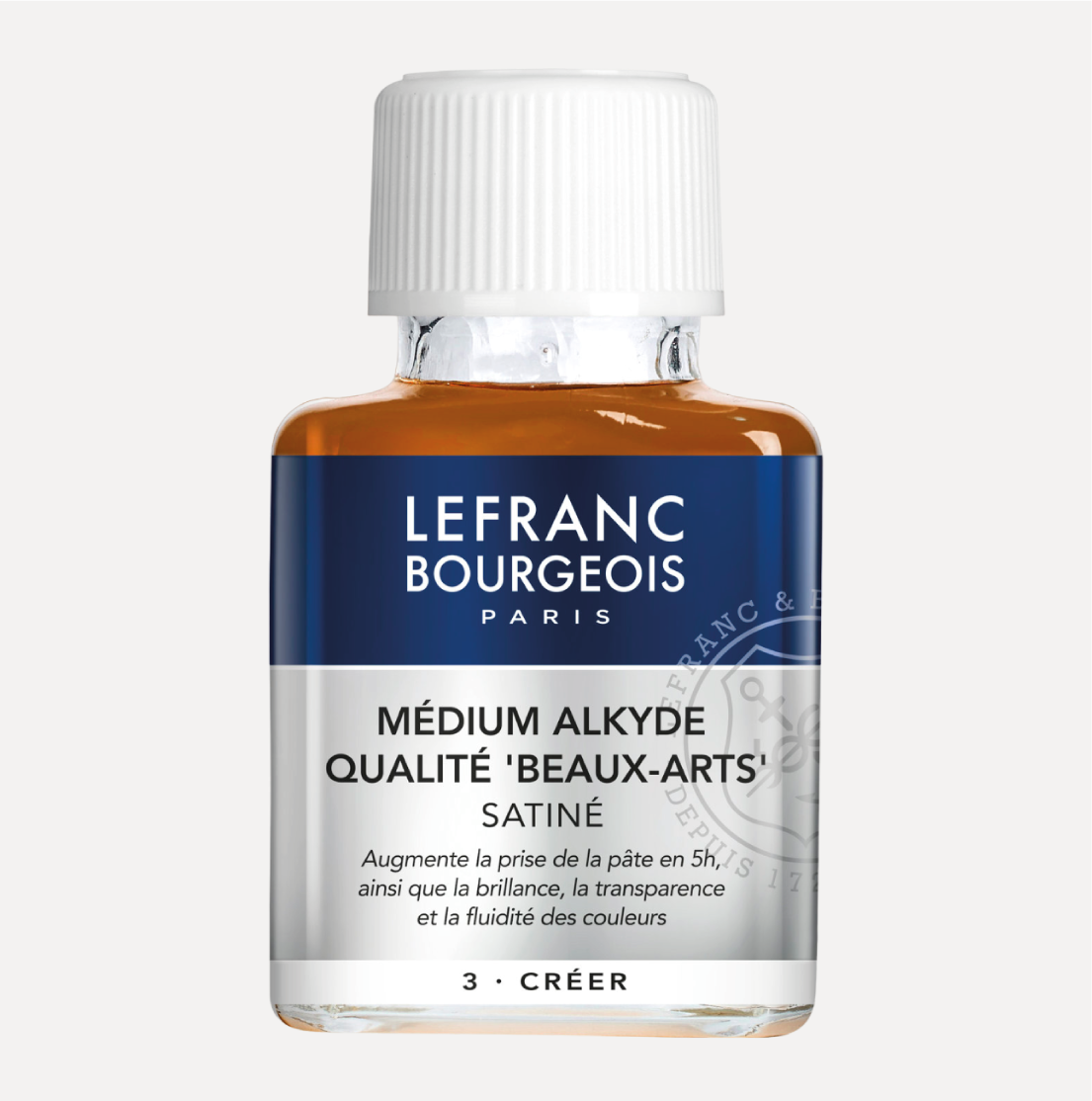 LEFRANC & BOURGEOIS Medium Alkyd ad essiccazione rapida. Migliora le fluidità e la trasparenza dei colori a olio, ma sopratutto accorcia il tempo di asciugatura. Se usato con pennellate morbide, facilita lavori strutturali o di dettaglio.