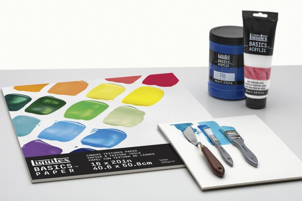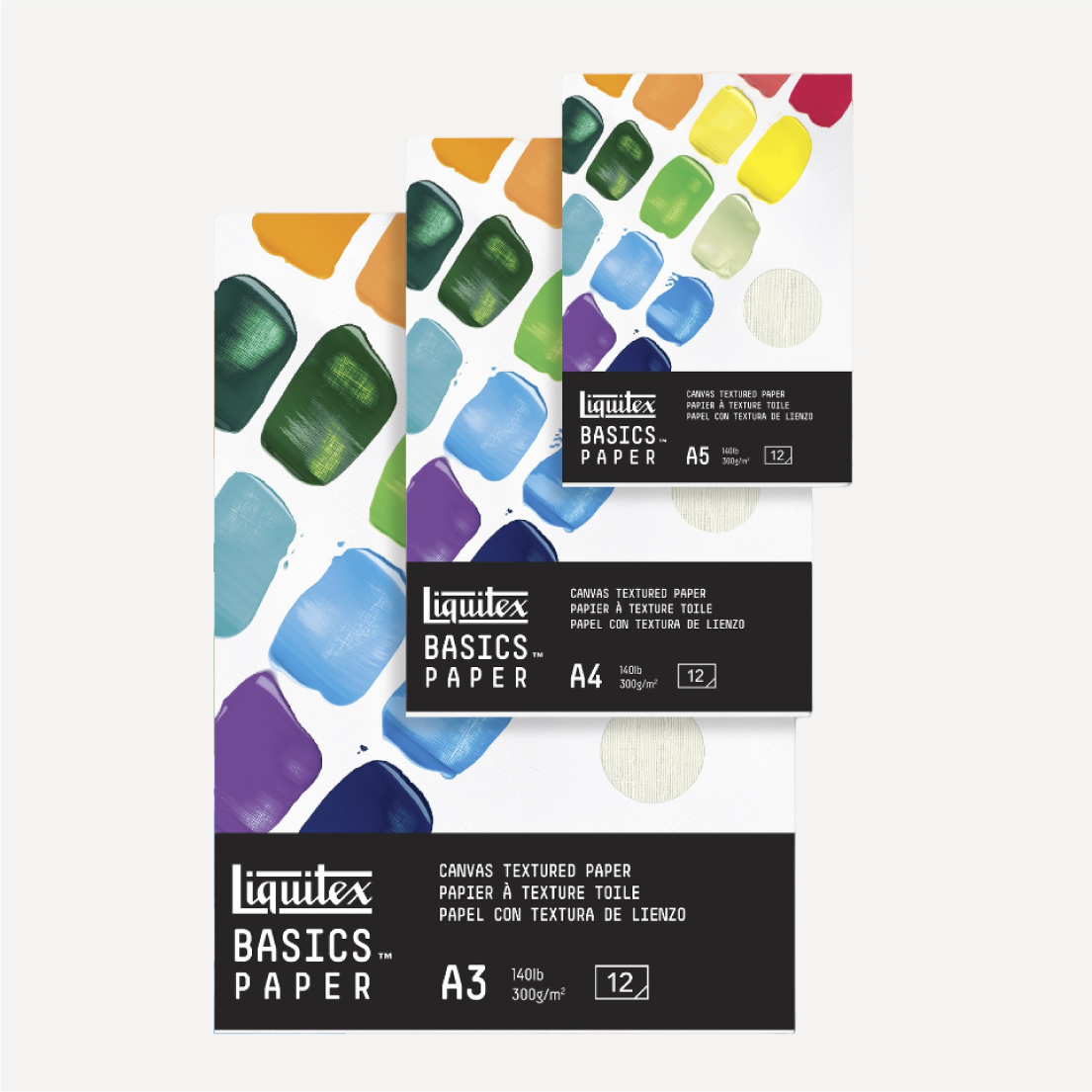 LIQUITEX Blocchi effetto tela. Sono progettati specificamente per l’uso con tutti i colori e mezzi acrilici. I blocchi acrilici sono realizzati al 100% con carta priva di acidi per stabilità e resistenza all’invecchiamento. È creato per fornire la massima brillantezza del colore. La carta è 300 g/mq ed è stata goffrata per produrre una trama “simile a una tela”.