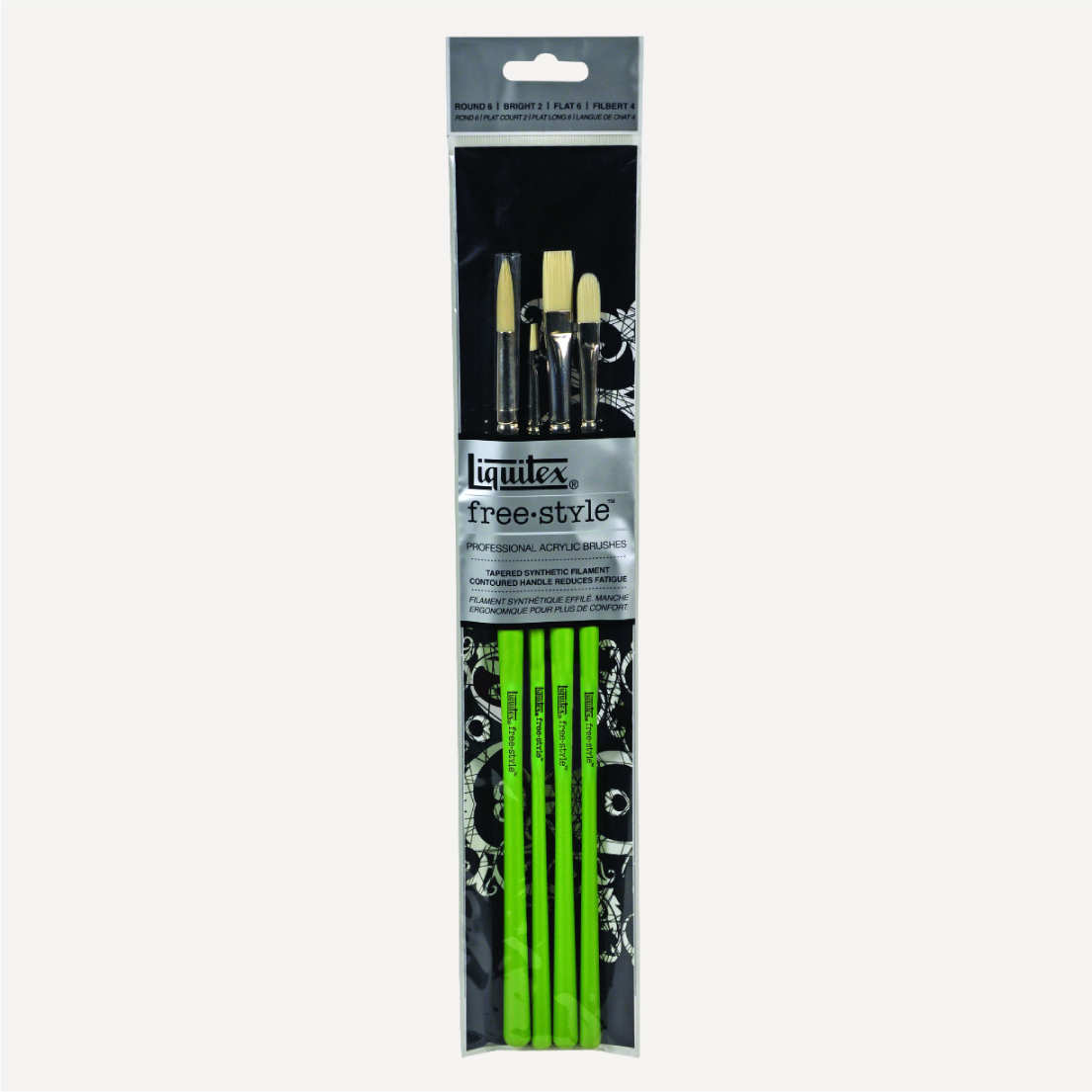LIQUITEX Set Pennelli FreeStyle. Set di 4 Pennelli con setole in Nylon di alta qualità e manico sagomato ergonomico. Il pennello professionale con ottima Elasticità e buona Tenuta del Colore.
