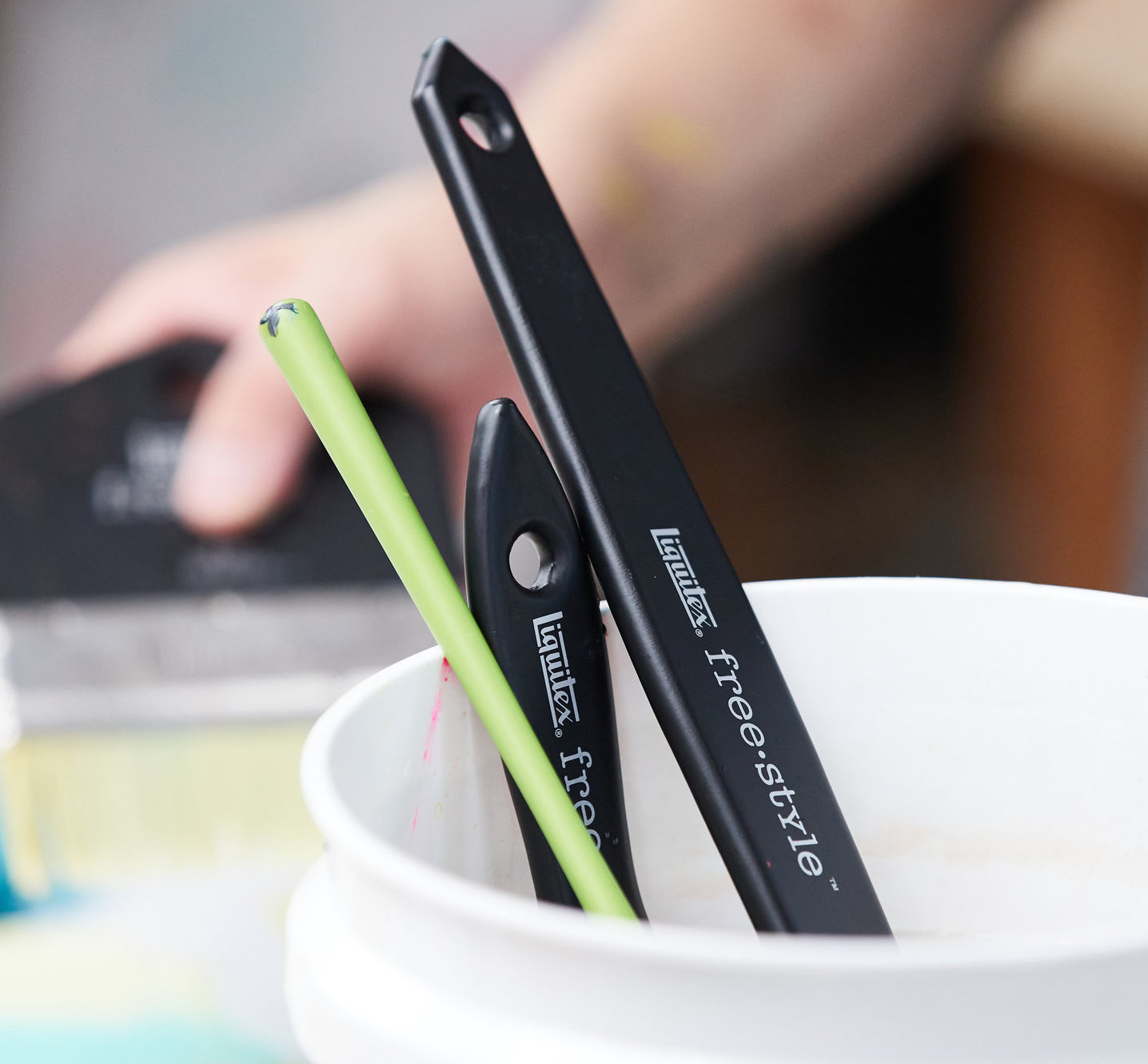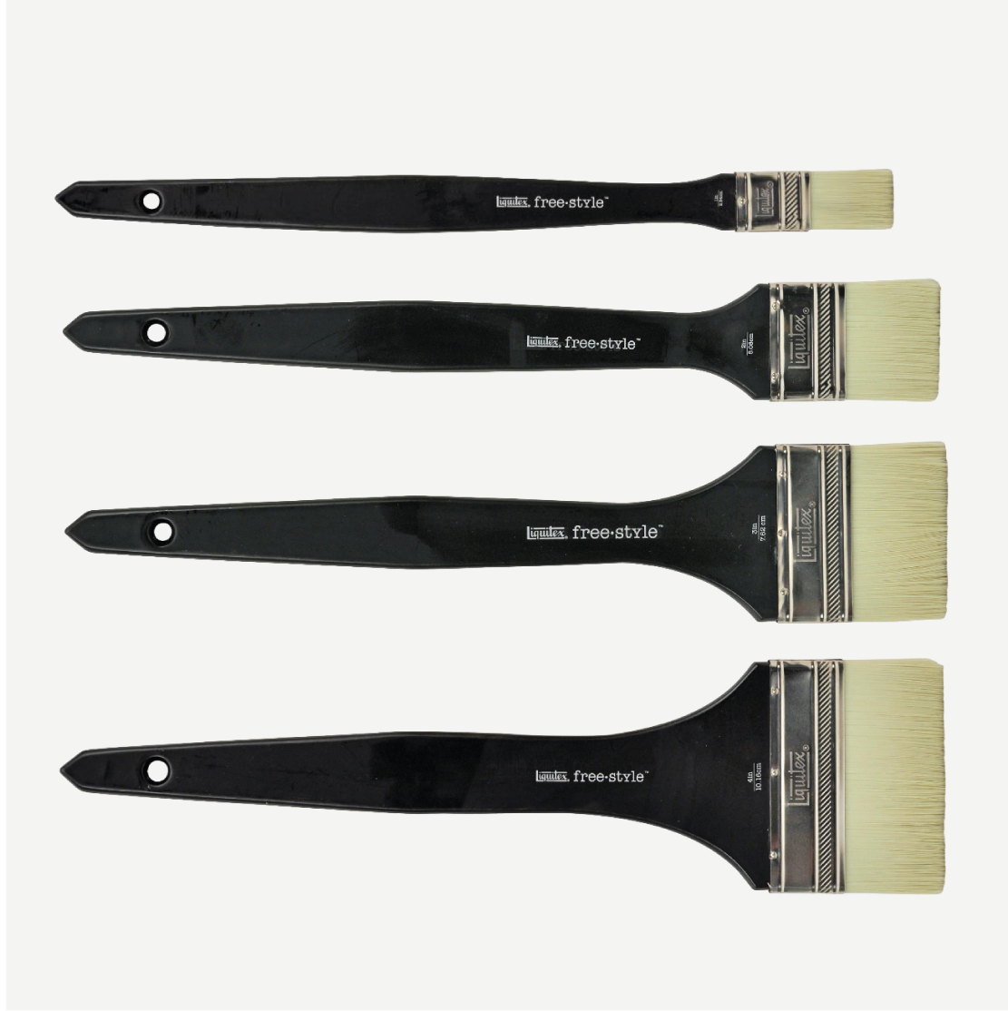 LIQUITEX Pennello FreeStyle – Largo manico lungo. Setole corte che consentono di caricare, trattenere e manipolare il colore e le paste più dense in maniera precisa! Manico lungo e punta piatta larga e resistente perfetta per lavorazioni su pitture murali o tele particolarmente grandi.
