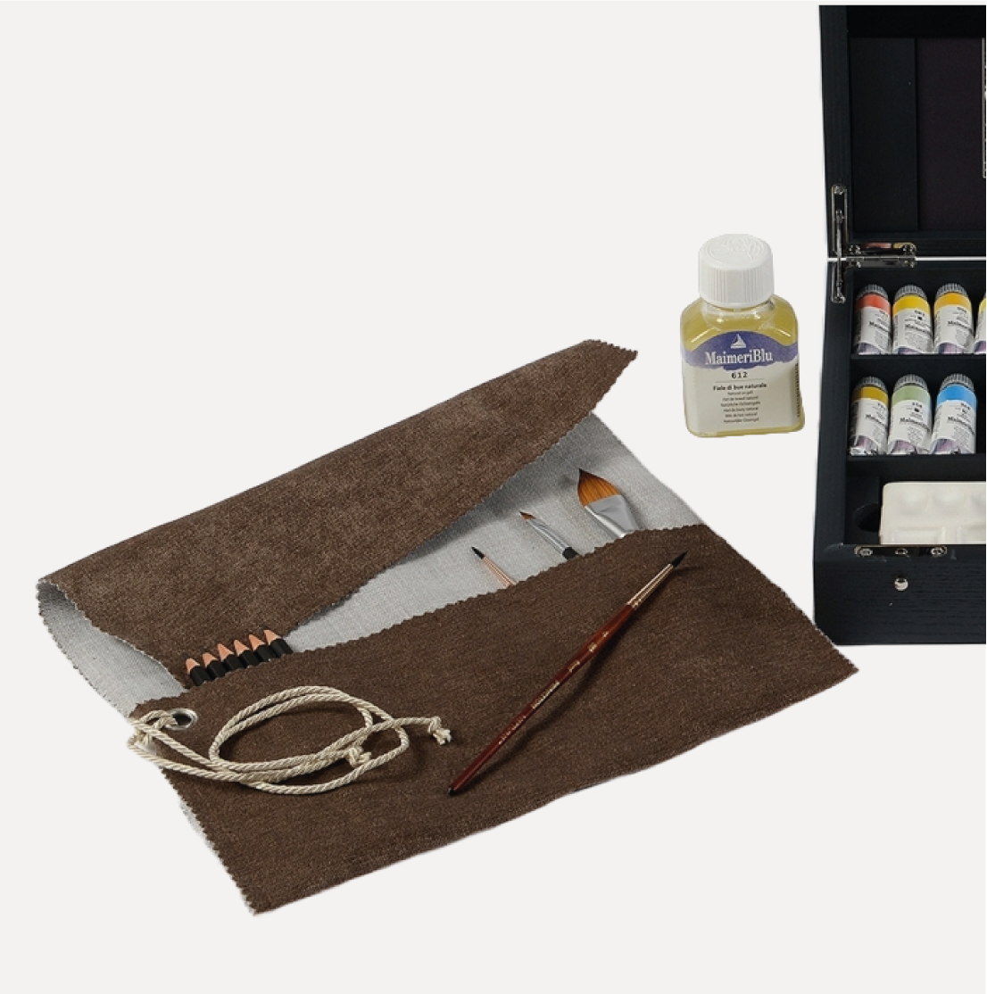 Questa gamma è il frutto dell’attenta ricerca di pigmenti rari. Nella gamma sono presenti pigmenti di cadmio, pigmenti di cobalto, ossidi di ferro, grigio di payne, giallo di Napoli, ocre naturali… per garantire grande trasparenza e luminosità, ogni pigmento è miscelato e bilanciato con cura con la gomma arabica naturale del Kordofan, per avere la stabilità più assoluta e un grado ideale di penetrazione nella carta.