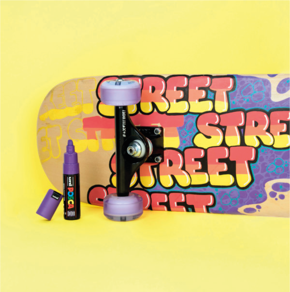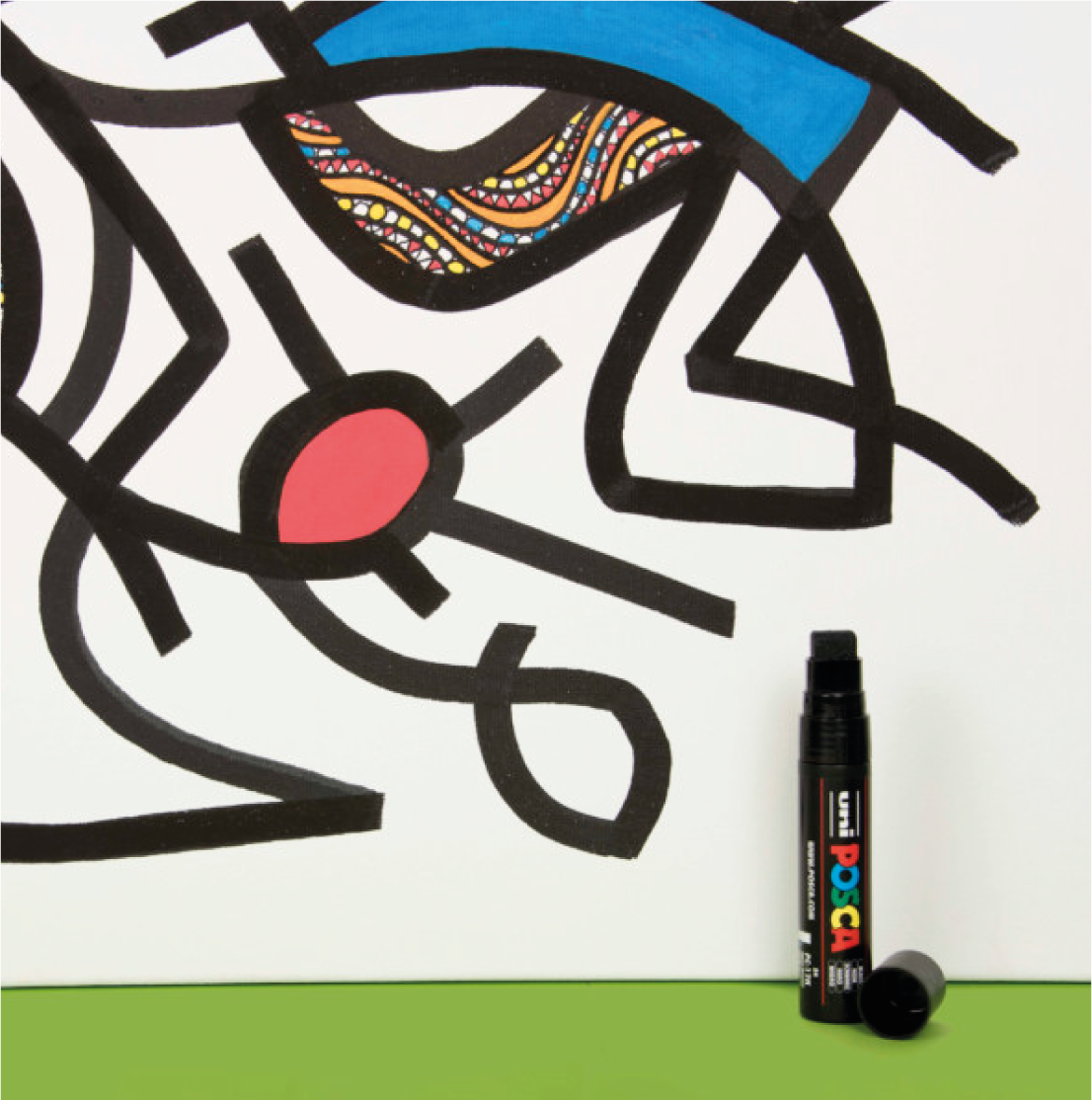 Pennarello Uniposca PC8K, punta larga a scalpello da 8mm. La grandezza e le caratteristiche della punta permettono all’artista di realizzare grandi riempimenti uniformi, disponibile in 4 colori.