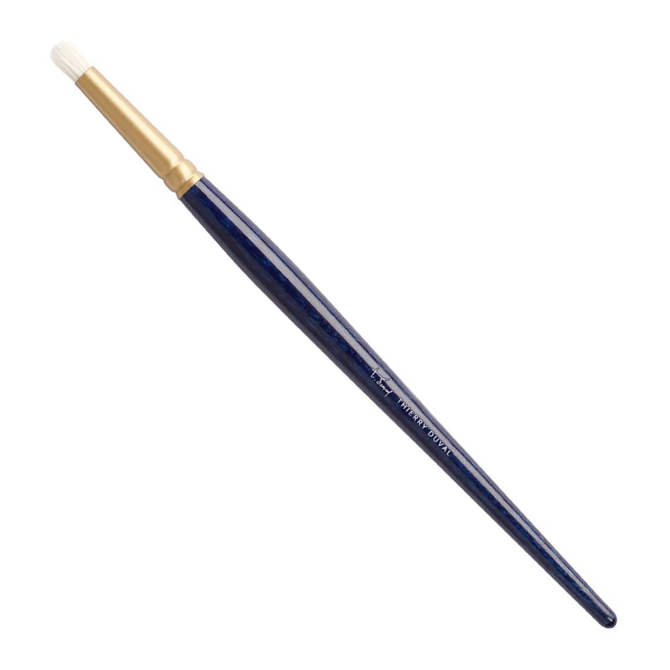 TINTORETTO Pennello Tondo Thierry Duval TD01. Della serie d’Autore del grande Acquerellista Thierry Duval nasce questo pennello tondo bombato setola extra. Questo pennello permette, tramite leggeri sfregamenti sulla carta, di realizzare ritiri di colore sia sul secco che sul bagnato, è perfettamente adatto per recuperare i bianchi della carta.