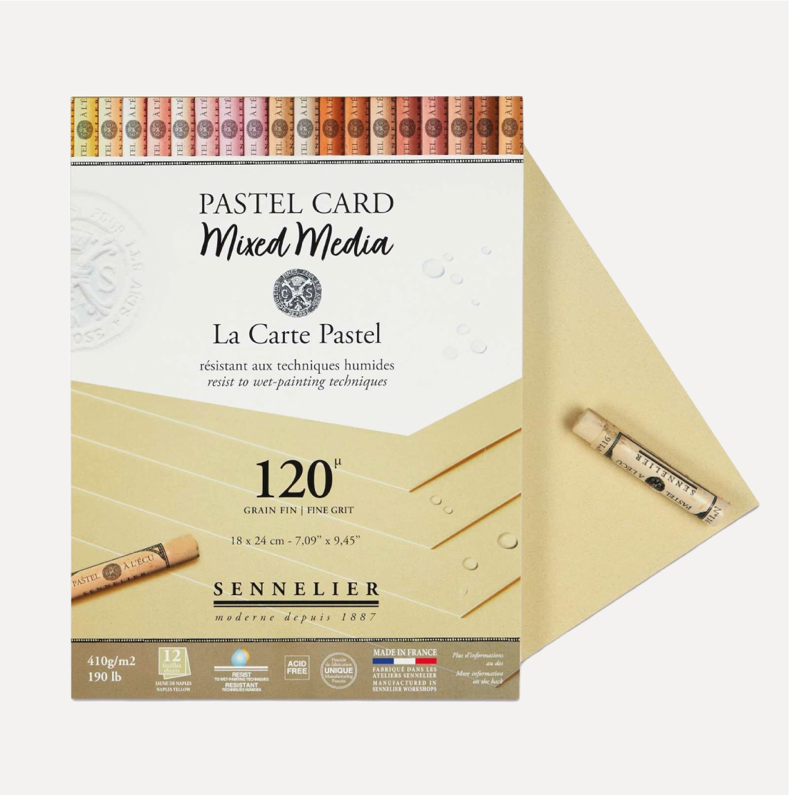 Prodotto in Francia, Pastel Card Mixed Media è un supporto dalle proprietà eccezionali, sviluppato appositamente per tutte le tecniche a secco e in grado di offrire numerose possibilità per le tecniche miste.
