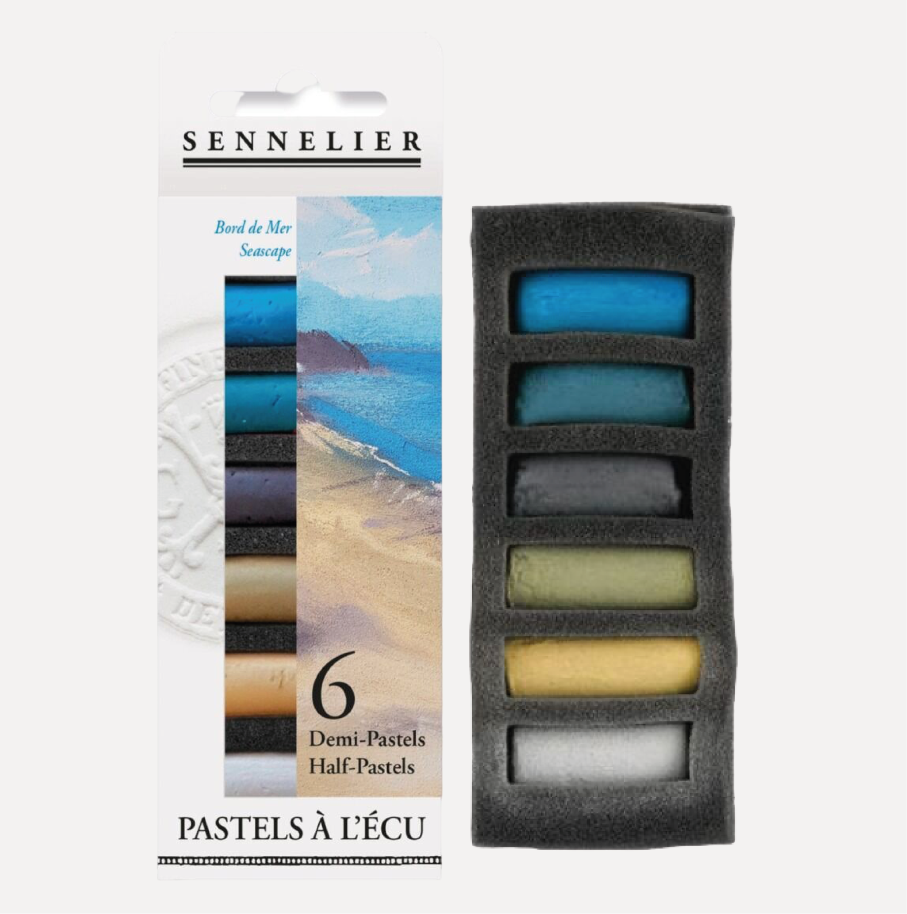 I Pastel à l’Écu di SENNELIER sono pastelli ultrapigmentati, tra i più utilizzati al mondo dai pastellisti professionali proprio per la loro intensità, luminosità e la loro resistenza alla luce. Questo set di 6 mezzi pastelli è perfetto per realizzare paesaggi marini