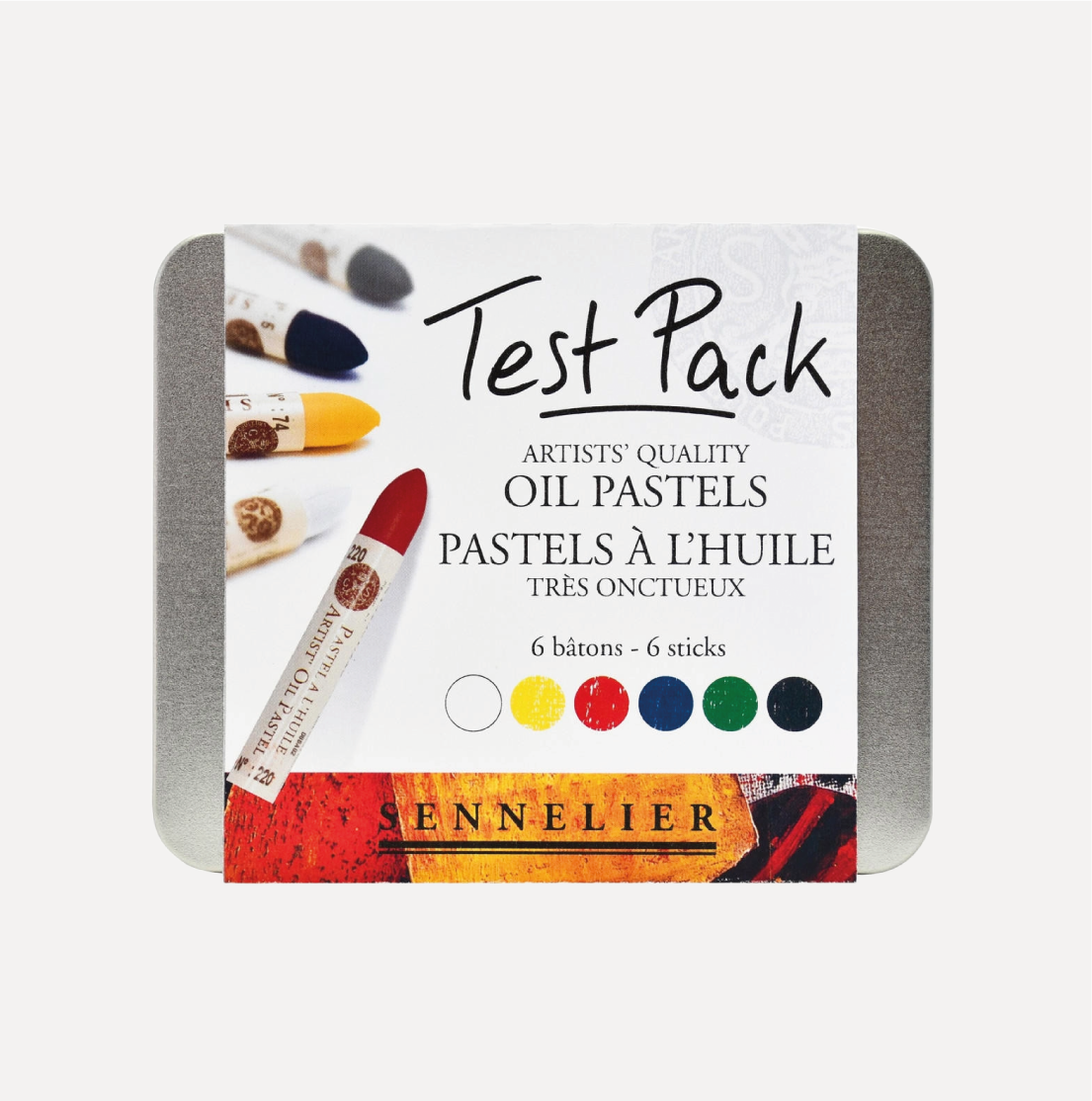 +SENNELIER TEST PACK Pastel à l’Huile 6 Pastelli ad Olio . Sono pastelli creati con pigmenti ad altissima qualità, toni forti e compatti. La confezione contiene 6 pastelli selezionati in una confezione di metallo!