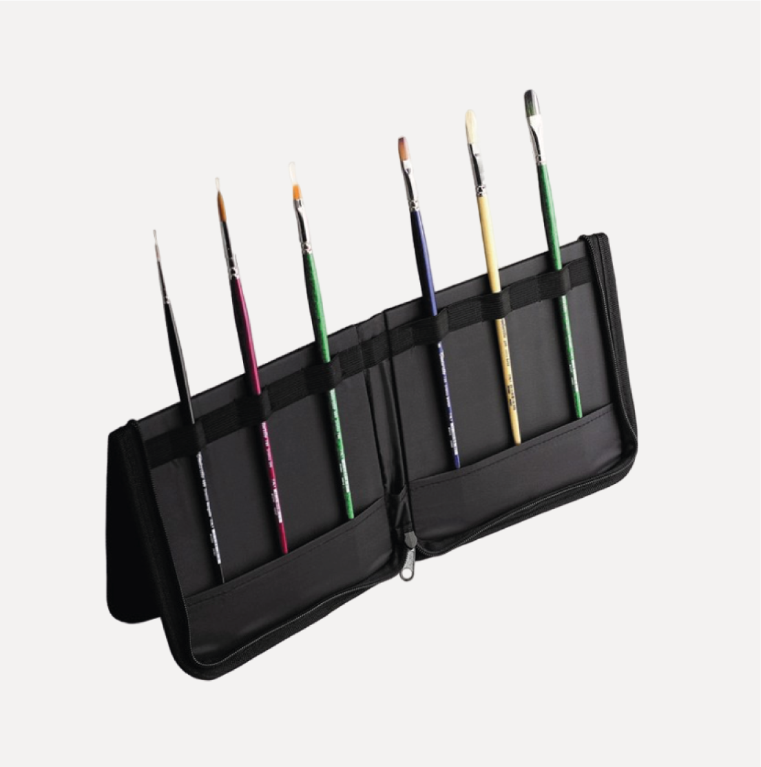 TINTORETTO Astuccio porta Pennelli pieghevole. Utilissimo astuccio in tessuto porta pennelli. Adatto a pennelli a manico corto e a manico lungo. L’astuccio aperto si piega per essere appoggiato sulla postazione per avere sempre a portata di mano i pennelli.