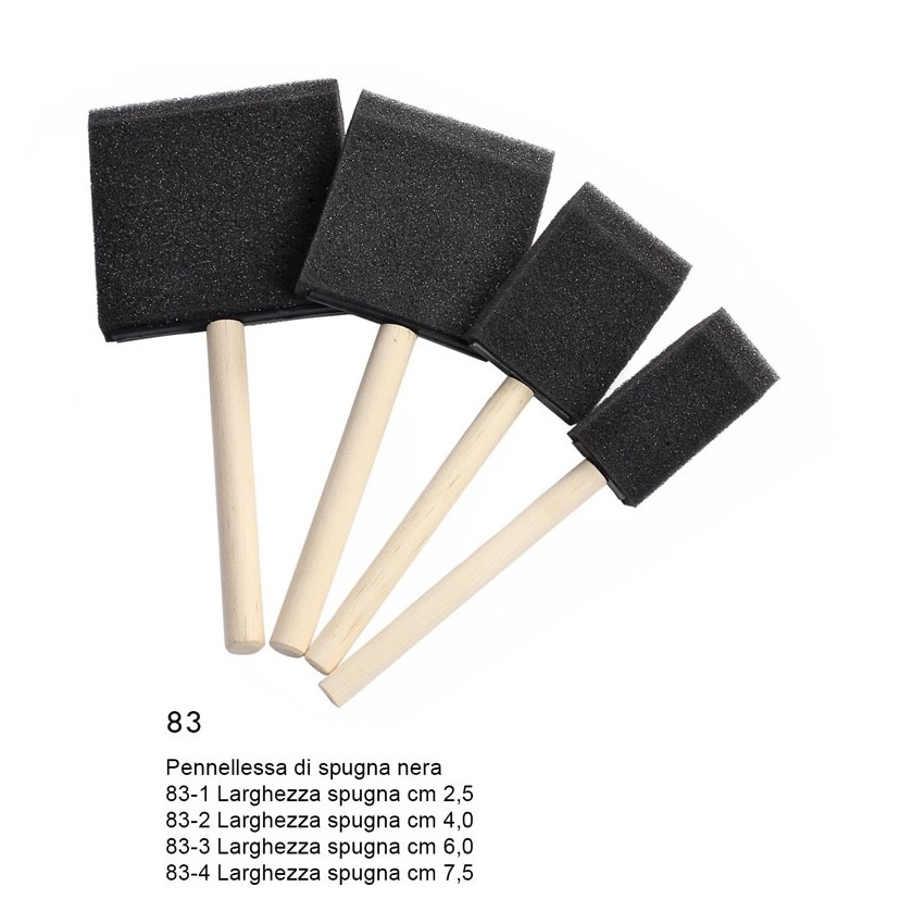 TINTORETTO Pennellessa di Spugna. La spugna è montata su base in plastica ed impugnatura in legno grezzo. Particolarmente indicato nell’ambito dello stencil con colori acrilici e tempere all’acqua o nella stesura di Vernici Finali.