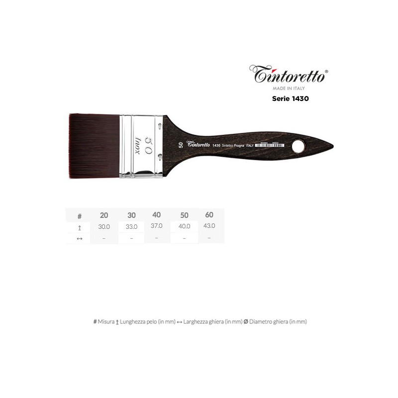 TINTORETTO Pennellessa Sintetico Prugna 1430. Pelo sintetico color prugna, morbido ed elastico è creato appositamente per il colore ad olio e Acrilico ed è estremamente resistente all’usura!
