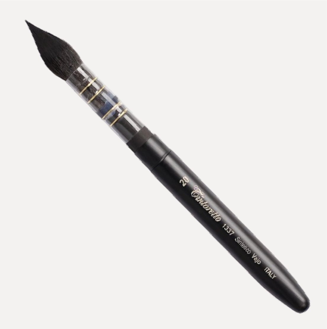 TINTORETTO Il Pennello tascabile serie 1337 per acquerello. Perfetto per l’acquerello e tascabile! Il Pennello 1337 di Tintoretto presenta un filato sintetico che riproduce le caratteristiche del pelo in Vajo Kazan. Il cappuccio funge da manico e conferisce estrema comodità all’artista.