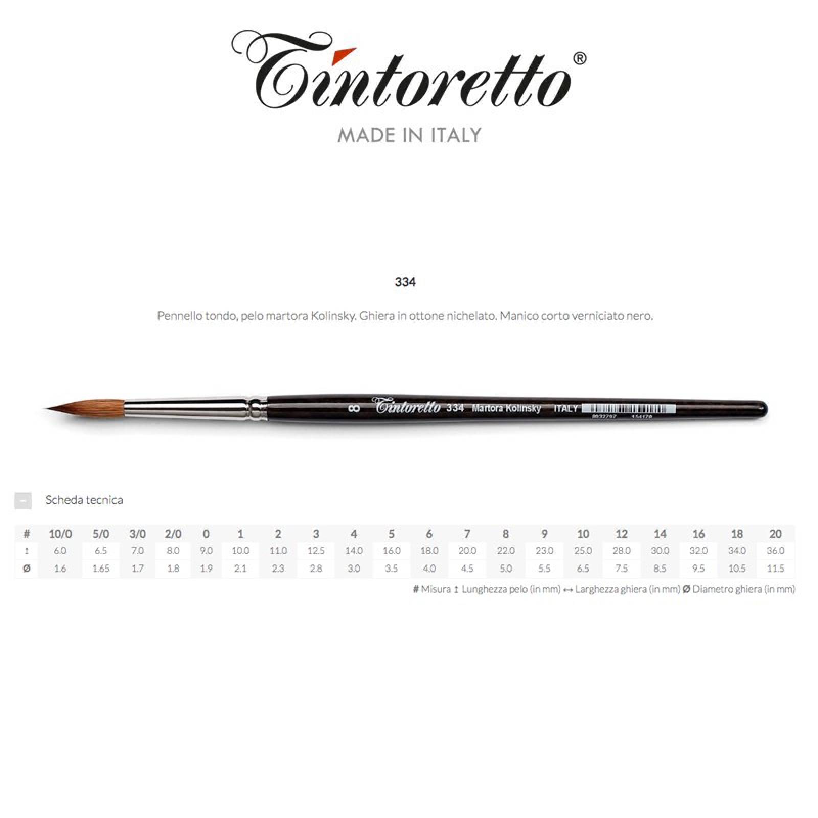 TINTORETTO Pennello in Martora Kolinsky 334 – Tondo. Questo pennello a manico corto e punta tonda, è realizzato con pelo di Martora Kolinsky e da esso ne eredità tutte le caratteristiche principali: elasticità, punta finemente lavorata e tenuta del colore ottima!