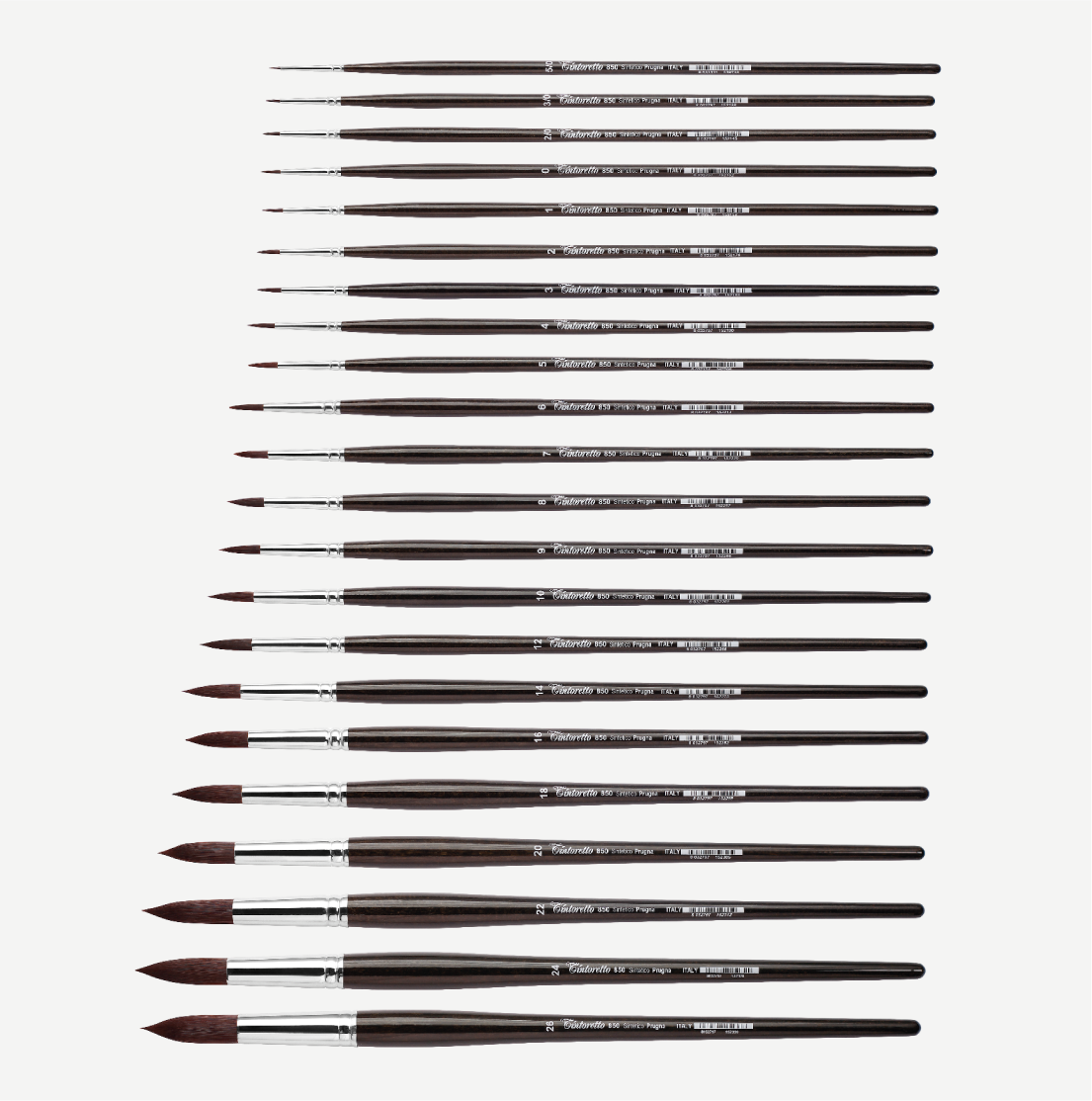TINTORETTO Pennello Sintetico Prugna 850. Pennello tondo, pelo sintetico color prugna, morbido ed elastico è creato appositamente per il colore ad olio ed è estremamente resistente all’usura!