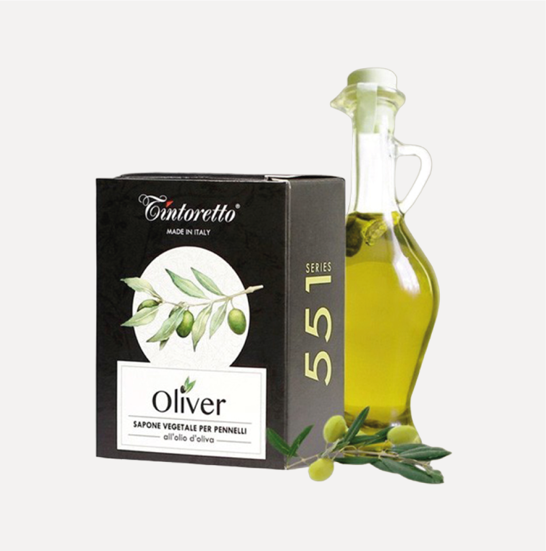 +TINTORETTO Sapone Vegetale per pennelli Oliver. Sapone OLIVER a base d’olio d’oliva per la pulizia dei pennelli. Realizzato partendo da un’impasto pensato appositamente per la pulizia delle setole, può essere usato anche delle altri parti che compongono il pennello. Il preparato è 100% vegetale ed creato a partire da olio di oliva.