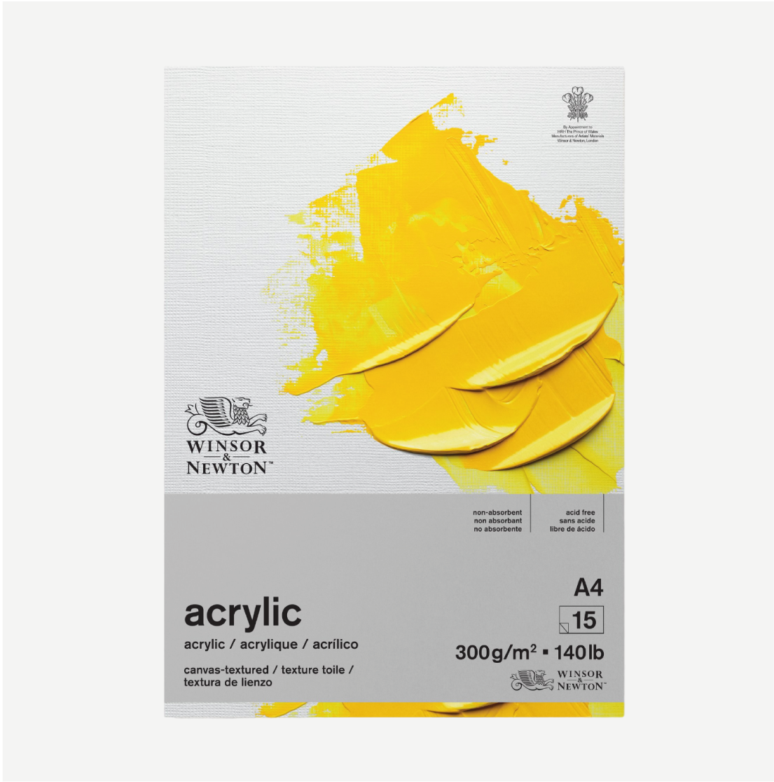 WINSOR & NEWTON Blocco per pittura Acrilica. I blocchi effetto tela per acrilico di Winsor & Newton sono stati progettati specificamente per l’uso con tutti i colori e mezzi acrilici. I blocchi acrilici sono realizzati al 100% con carta priva di acidi per stabilità e resistenza all’invecchiamento. È creato per fornire la massima brillantezza del colore. La carta è 300 g/mq ed è stata goffrata per produrre una trama “simile a una tela”.