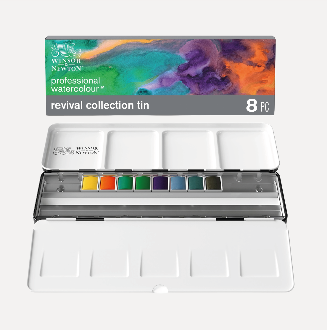 WINSOR & NEWTON Colori Acquerello Professional – Set 8 Godet REVIVAL Collection. Si tratta di acquerelli extra-fini di qualità professionale, realizzati esclusivamente con pigmenti di qualità superiore. Con questo set potrai esplorare fantastiche tonalità tipiche del passato, riformulate per risultare permanenti e super sicure.