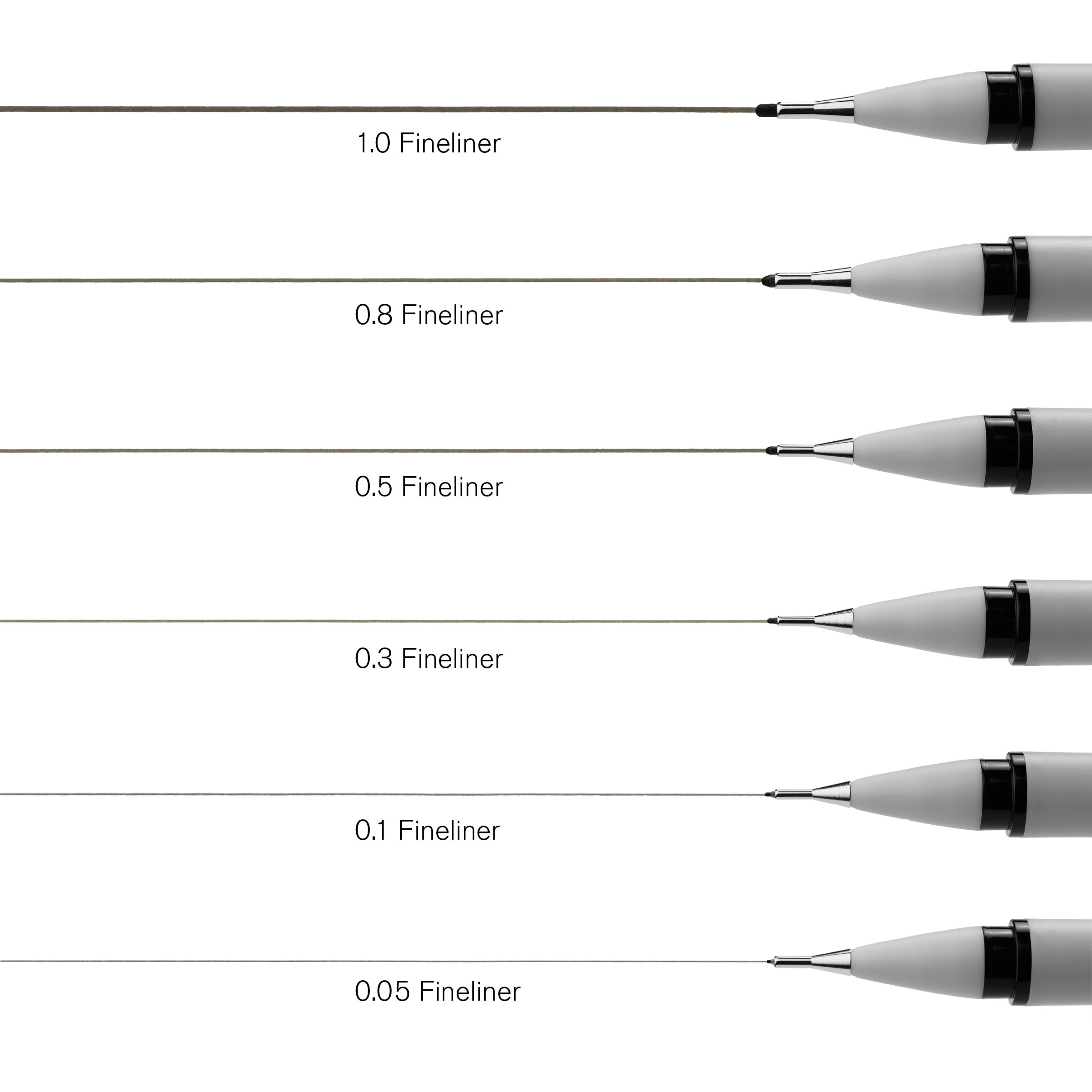 Viene prodotto con pennini di tutte le dimensioni e colori. Disponibile con punte da 0,05, 0,1, 0,3, 0,5, 0,8 e 1,0 mm.