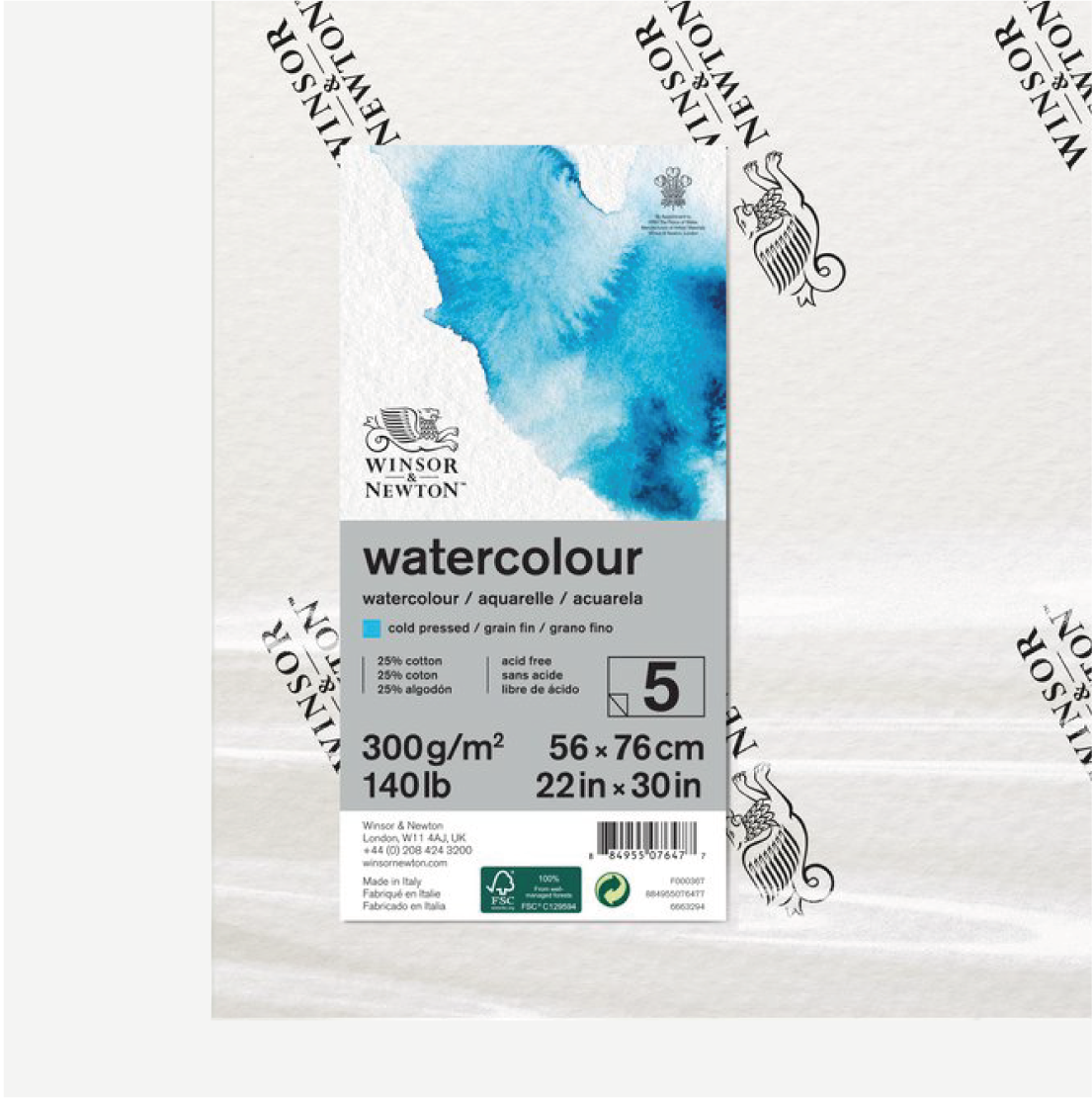 WINSOR & NEWTON Foglio per acquerello grana FINE 300gr. La nuova carta per acquerello di Winsor & Newton è totalmente Made in Italy. Il Foglio è Venduto Singolarmente