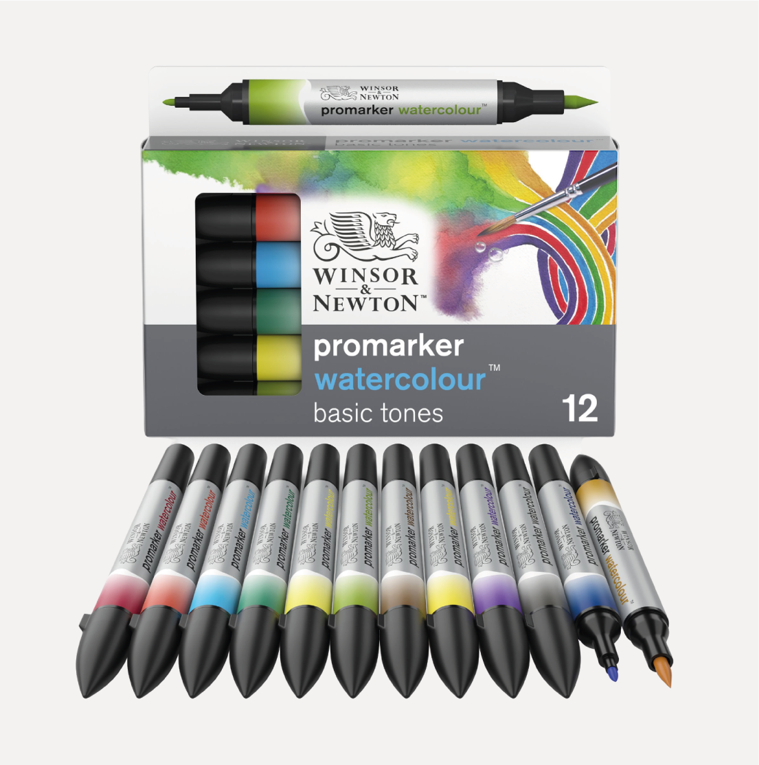 WINSOR & NEWTON Pennarello Promarker Watercolour Set Toni Base. 12 Tonalità Base! Racchiudono in un’unica soluzione le caratteristiche tipiche dei marker e degli acquerelli. Sono dotati di inchiostro a base d’acqua e doppia punta.
