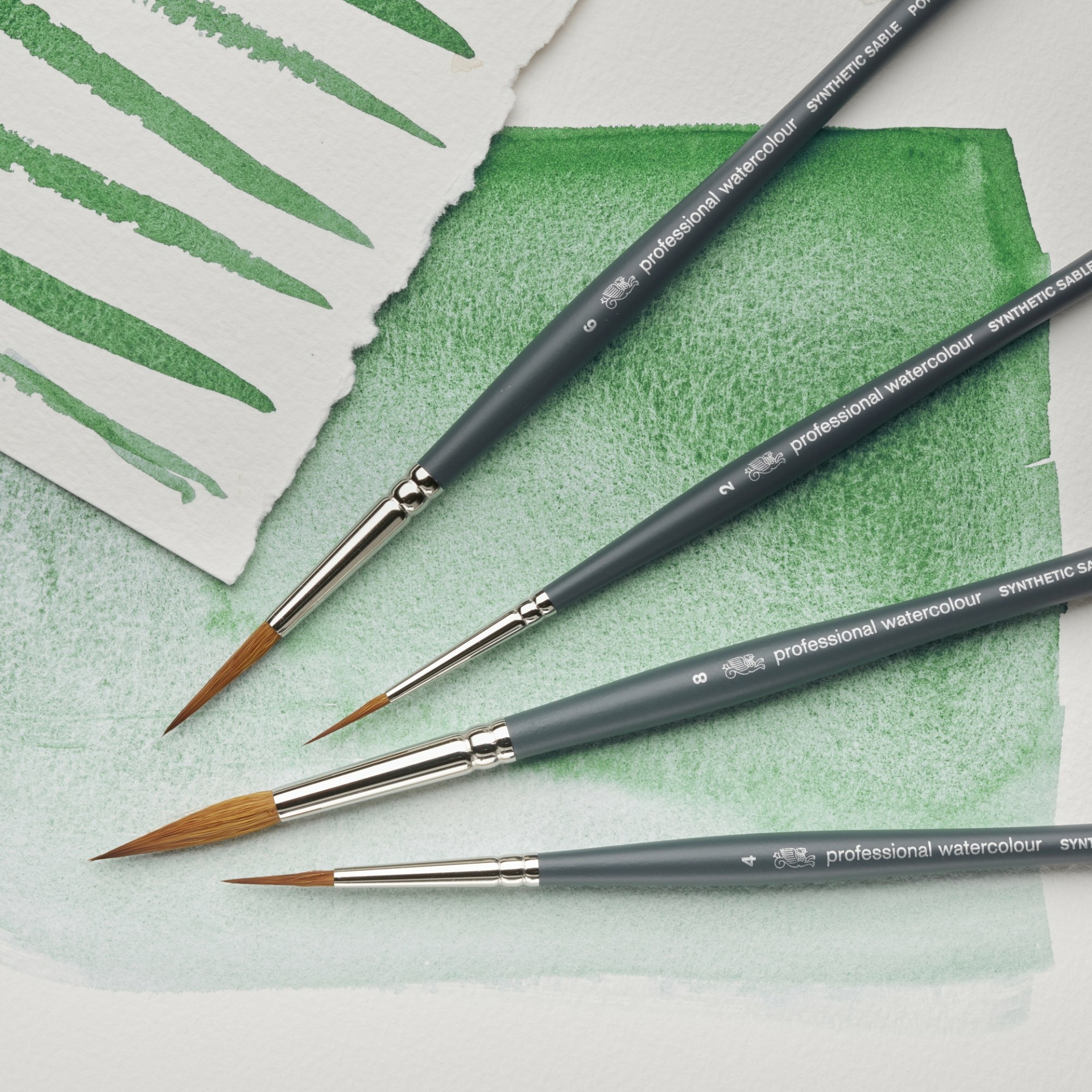 WINSOR & NEWTON Pennello Professional – Sintetico Martora – Tondo Fine. Sono dei pennelli innovativi e professionali. Realizzati con fibre sintetiche che emulano il pelo di martora.