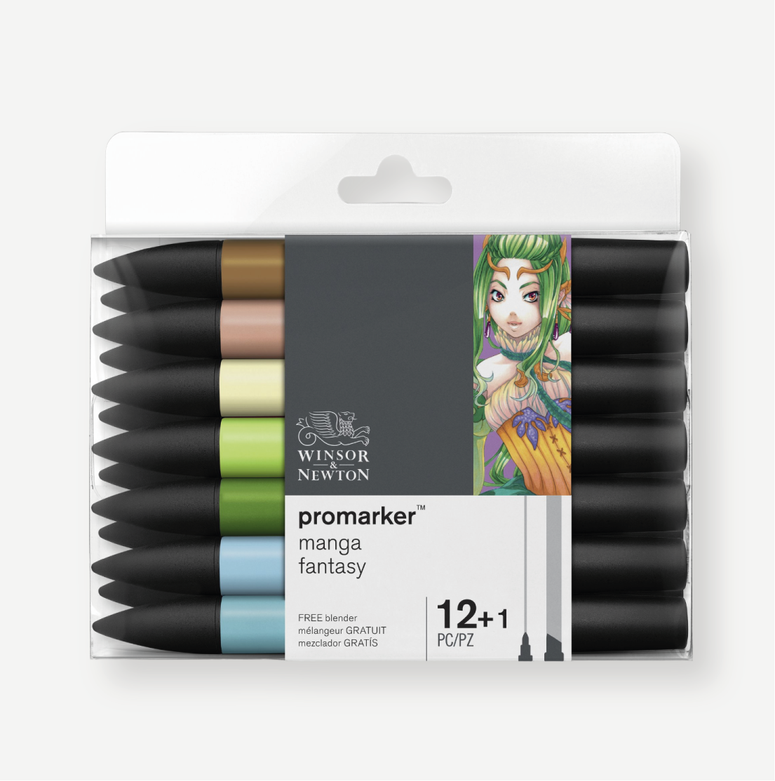 WINSOR & NEWTON Set Pennarelli Promarker Manga Fantasy. Un set per gli illustratori di comic e manga. 12 Promarker attentemente selezionati da Winsor & Newton per le tue opere. Il tutto in un pratico astuccio di plastica per mantenerli sempre oragnizzati!