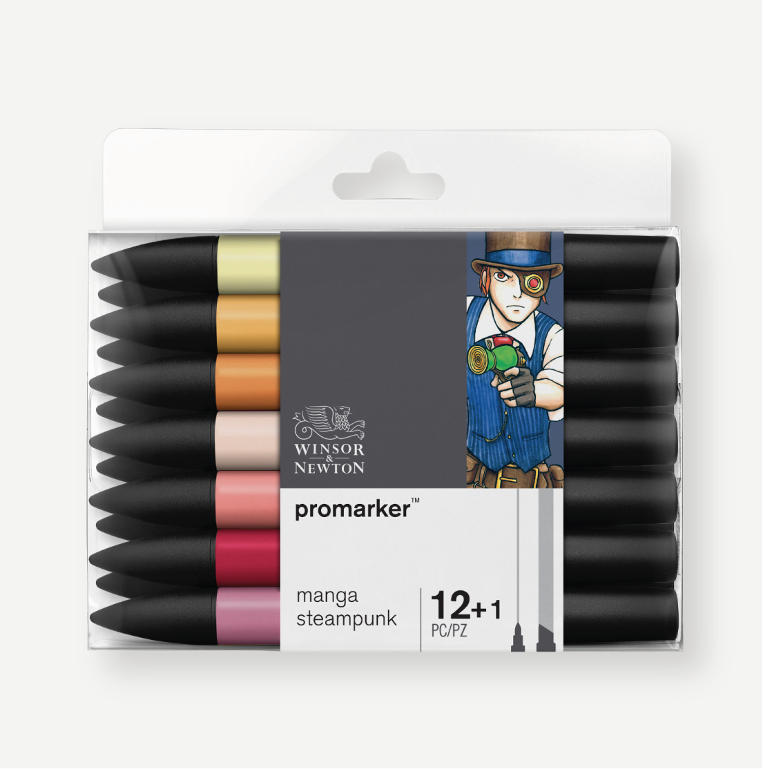 WINSOR & NEWTON Set Pennarelli Promarker Manga Steampunk. Un set per gli illustratori di comic e manga. 12 Promarker attentemente selezionati da Winsor & Newton per le tue opere. Il tutto in un pratico astuccio di plastica per mantenerli sempre oragnizzati!