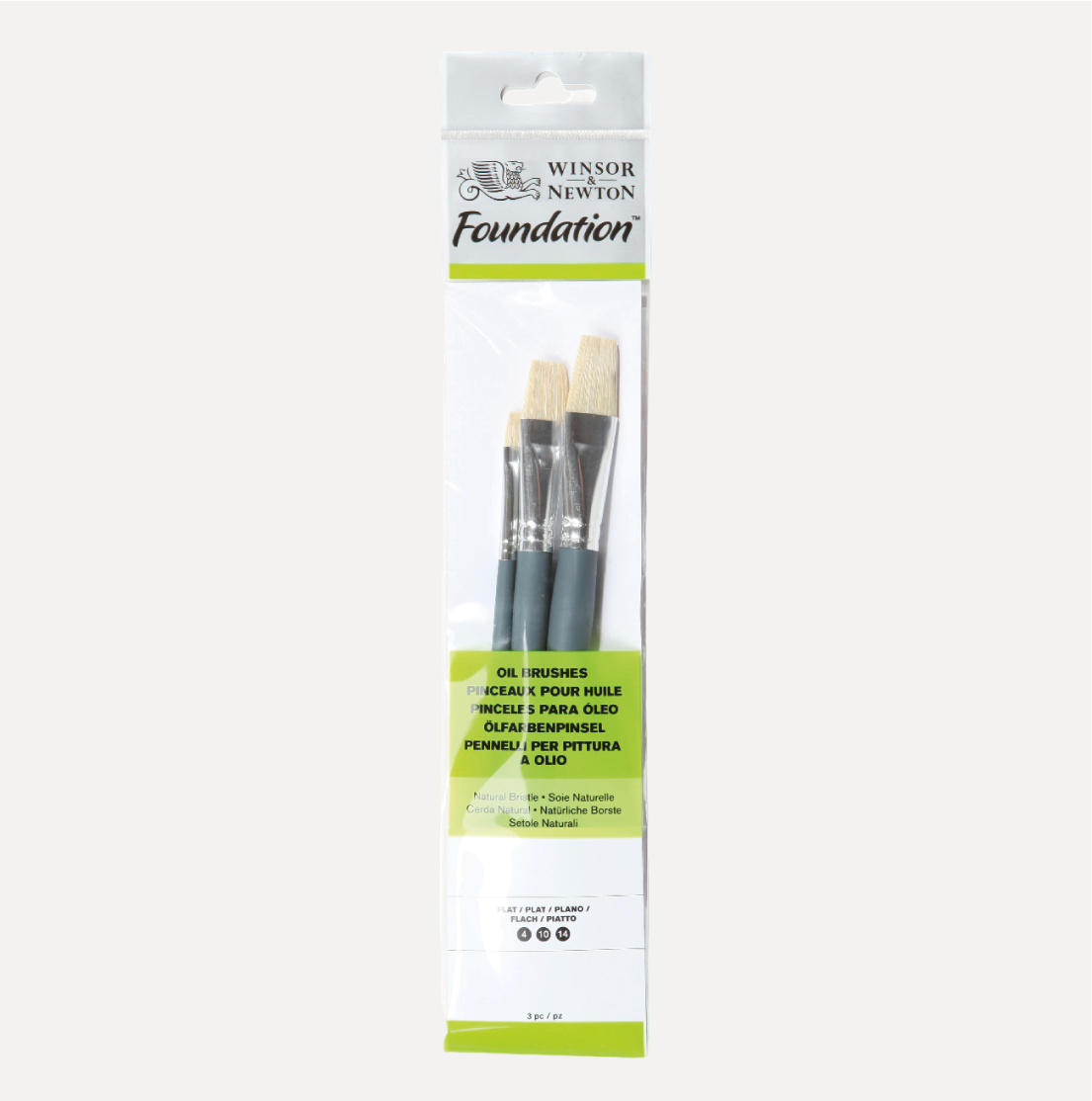 WINSOR & NEWTON Set Pennelli per Olio FOUNDATION. Manico corto e pelo in setola naturale. Il set contiene 3 pennelli a punta piatta nelle misure: 4, 10, 14. Perfetti per la pittura Olio, ma anche per la pittura Acrilica.