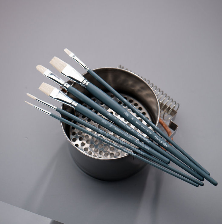 WINSOR & NEWTON Set Pennelli per Olio FOUNDATION. Manico corto e pelo in setola naturale. Perfetti per la pittura Olio, ma anche per la pittura Acrilica.